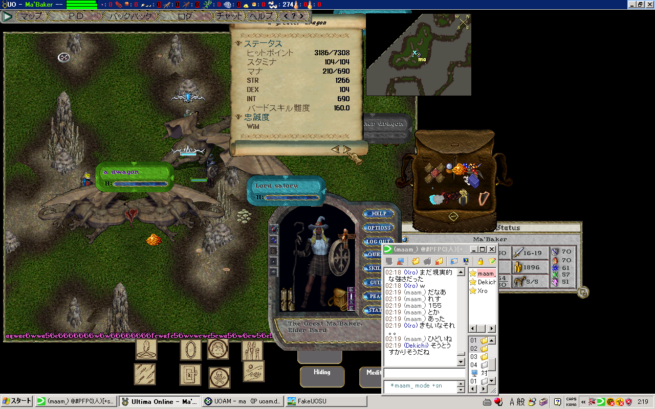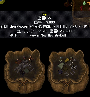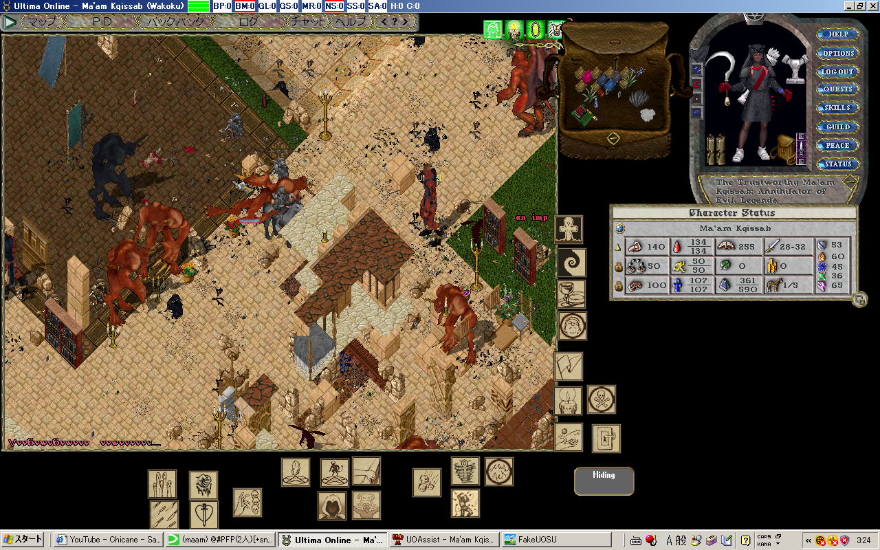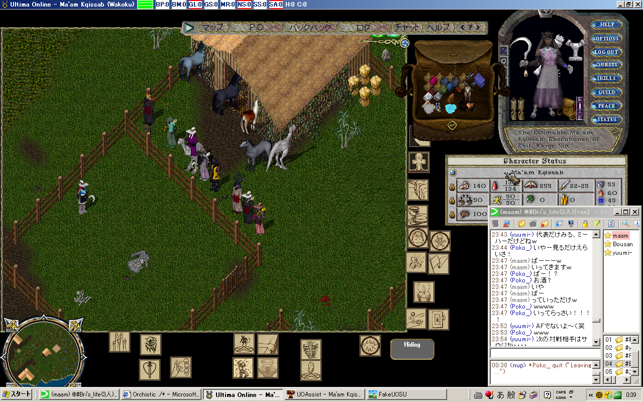 4月に家維持のために課金して6ヶ月後の今日課金しようと思ってたんだけど 家の腐敗は近年止まってたらしんだけど、最近再開されて、それ以降6ヶ月から3ヶ月に縮まってたみたいで、 あっけなく13年間 (開始から・実質は105month位か) は消えさってしまった。 変な話PCに向かえばUOの価値観は優先されるのに現実に戻ると全く低下、ネットゲームの形のない財産って不思議 そして消失 私の青春時代とまたがりやがったこのゲーム 嫌な思い出もあったろうけど、楽しかった時がやっぱ一番覚えてる 殆ど覚えてないけど。でもやっぱ感慨深い またやるとしたら対人のWARとか圏内戦関連?そういう人も未だいるみたいな? マジまたなんかあったら本家、エミュ鯖、他ゲーム(AOS、Diablo大好物)にかぎらず昔のお友達誘ってください! 絶対のってくんで! UO、一人でも全然楽しめたし、2d時代なんかちょーだいすきだった 荷馬は乗れないのかと。 もう 布とか服とかパッチレア、旧アイテム、可愛いアイテム集めとかの趣味の世界には没頭する気にならん 一からはきつすぎるwRMさえあればなんか出来るんだろうけど夢がないし やっぱ思い出 以下画像、 まじめにやったわいばーんりーが等、末期は想い出深いものがいっぱい どう転んでも反りが合わない人、こんな人がネットにいるんだ?(当時のネットへの偏見)と思うくらい素敵な人といっぱい会えた これからもっともっと忘れてしまうのが悲しい PR |